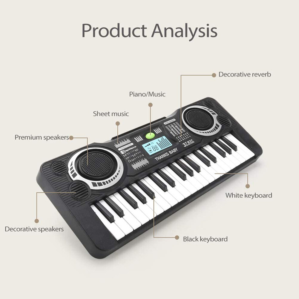 2. 37-key design: Designed according to the size of the child's fingers, allowing the child to play easily. The toggle key allows you to conveniently adjust free play and music modes.