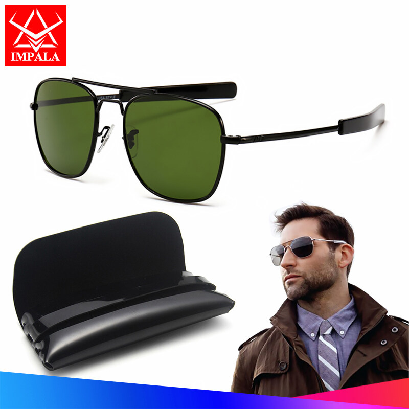 IMPALA QT1803P Fashion Sunglasses Men Women Real Hardlex Glass Lens sun glasses for men style Air Force Aviator Eyewear HD Lens Tempered Glass Material Metal Frame