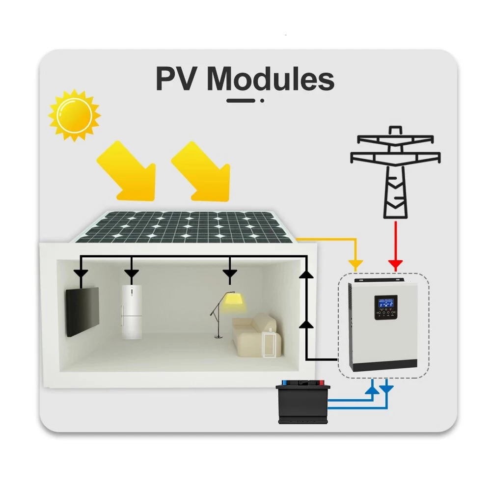 This is a multi-function inverter/chargei; combining functions of inverter solar charger and battery charger to offer uninterruptible power support with portable size. Its comprehensive LCD display offers user-configurable and easy-accessible button operation such as battery charging current, AC/solar charger priority and acceptable input voltage based on different applications.
