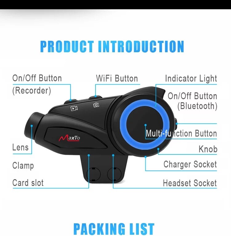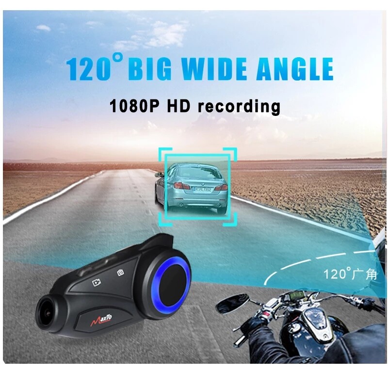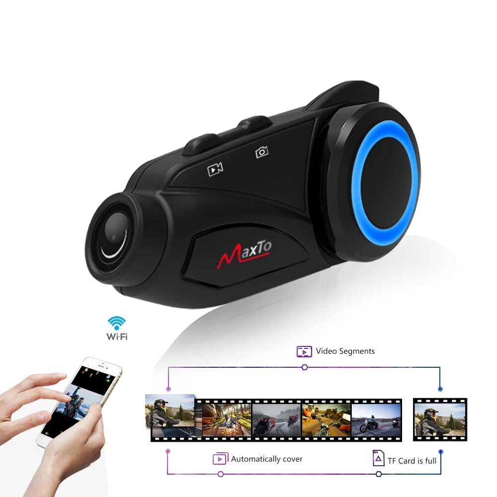 Maxto M3 Waterproof Intercom Motorcycle Headset 1080P HD Camera 6 Riders Group Talking Bluetooth Moto Interphone & Wifi Video Recorder with Soft wire hard wire