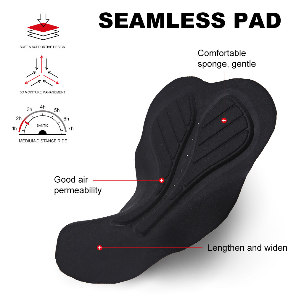 The high-density sponge cushion is used to effectively improve riding comfort. Breathable fabric perforated design, moisture absorption and breathability; specially developed 4D three-dimensional version combined with the characteristics of men's crotch, specially designed for men's road/mountain bike riding