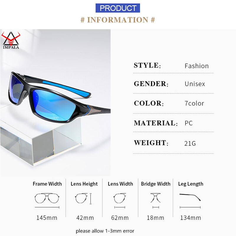 IMPALA PG1608W Fashion Outdoor Sports Polarized Anti Glare Sunglasses Men Women UV400 HD Lens Night Vision Sun glasses Outdoor Cycling Glasses for Men
