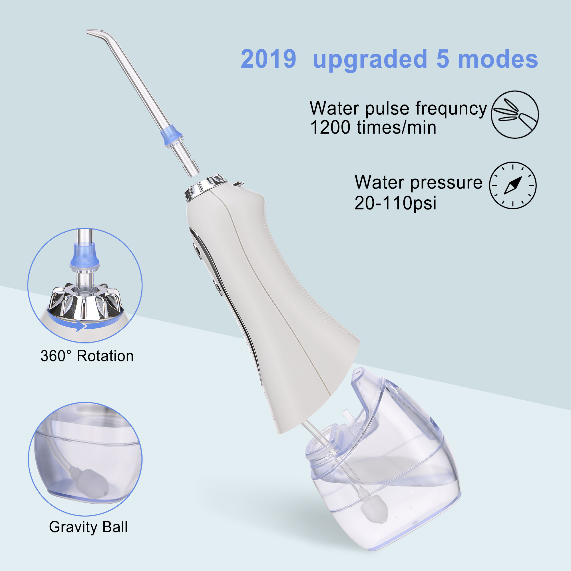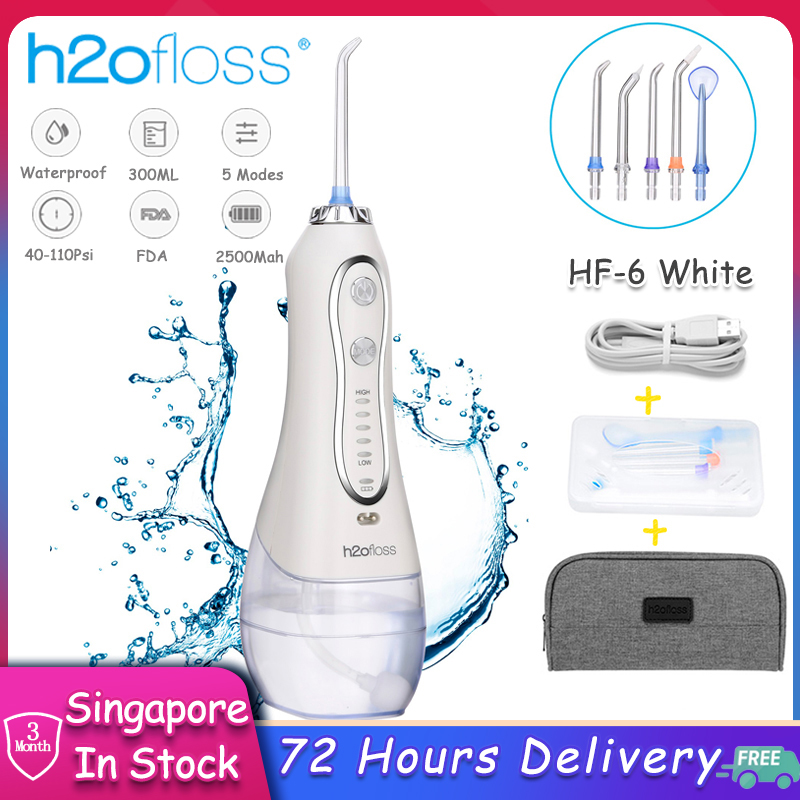 H2ofloss Portable Oral Dental Irrigator Cordless Wate Flosser Waterproof Teeth Cleaner with 5 Modes 5 Jets Tips and 300ml Detachable Reservoir Rechargeable Dental Flosser for Brace Bridges Care, Home Travel