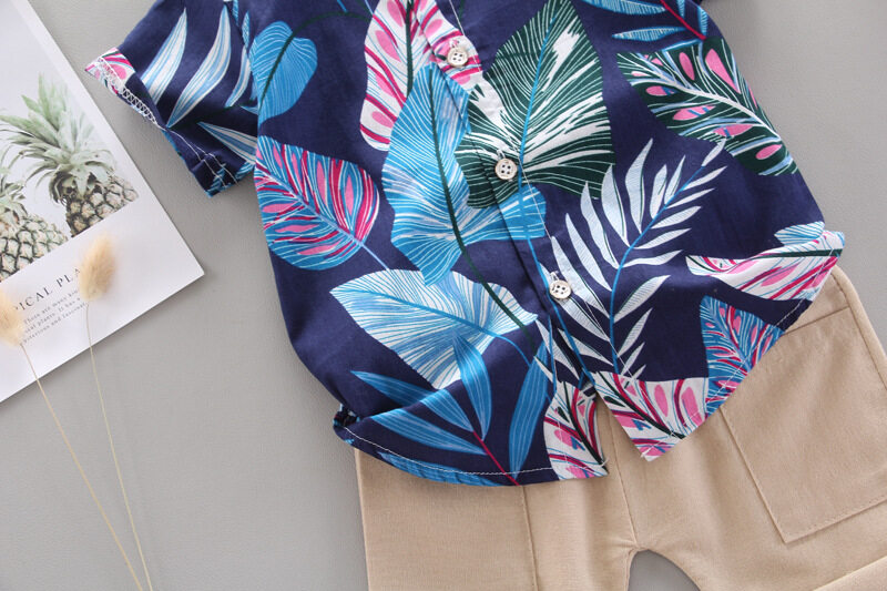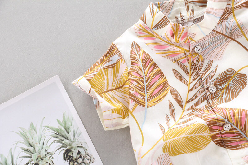 Baby boy clothes kids set 0-4 years old children's printed leaves cotton one breasted two piece suit