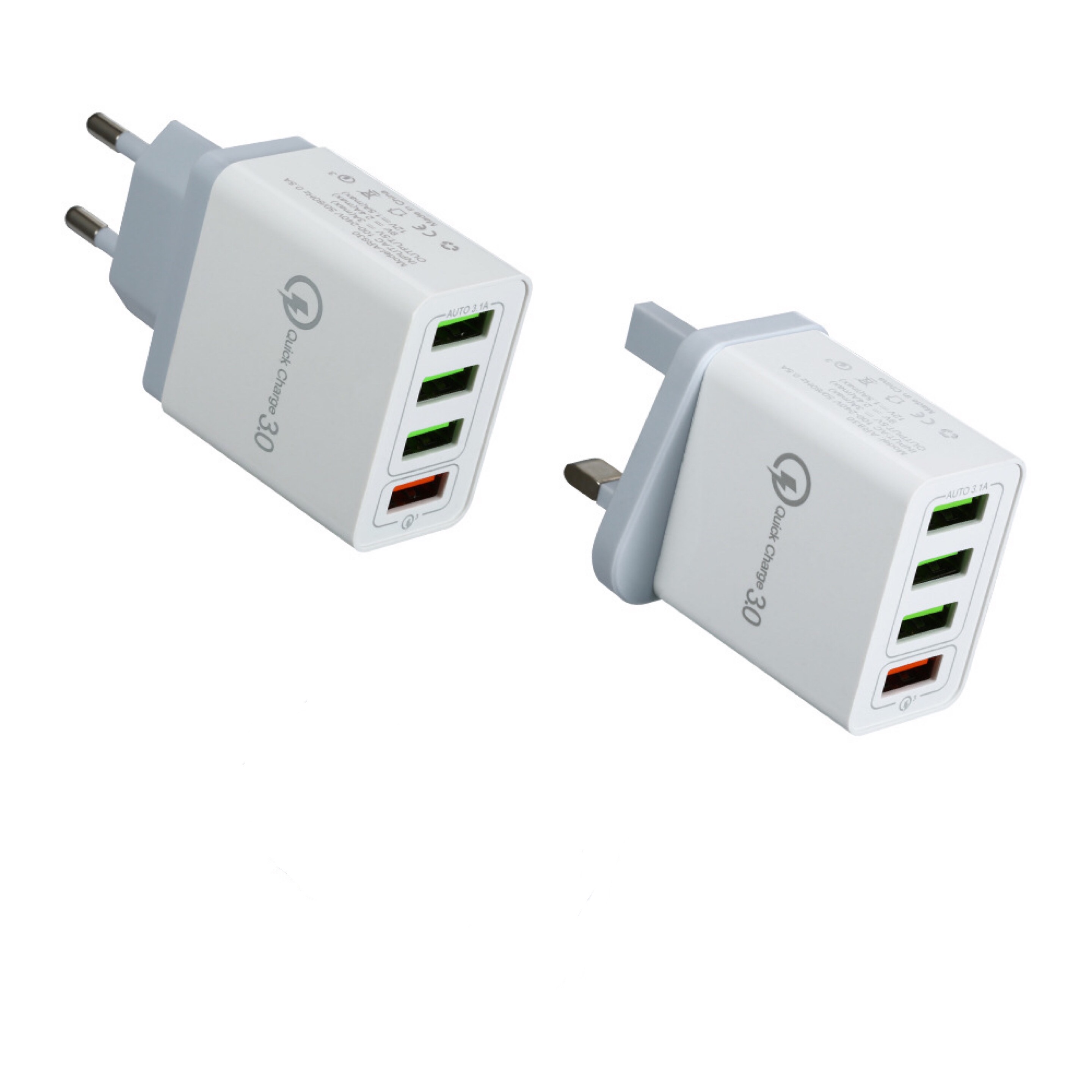SG Stock | Quick 3.0 Wall 4 Port USB Fast Charging Portable Adapter UK EU Plug