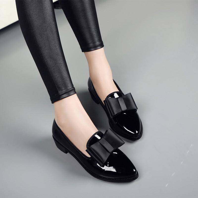 Ladies British Style Flat Pointed Patent Leather Bow Low Heel Small Leather Shoes