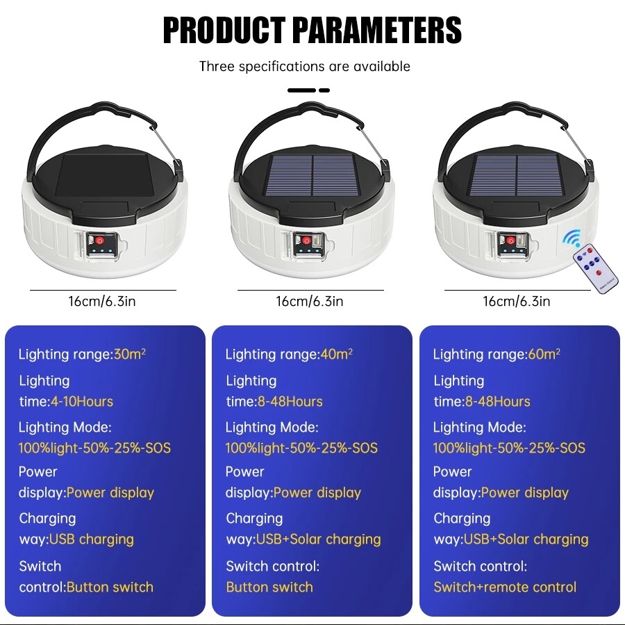 SANX 400W Solar Charge Lantern USB Rechargeable LED Bulb Lamp Remote Control Portable 3 Modes Emergency LED Night Market Light Outdoor Hiking Home