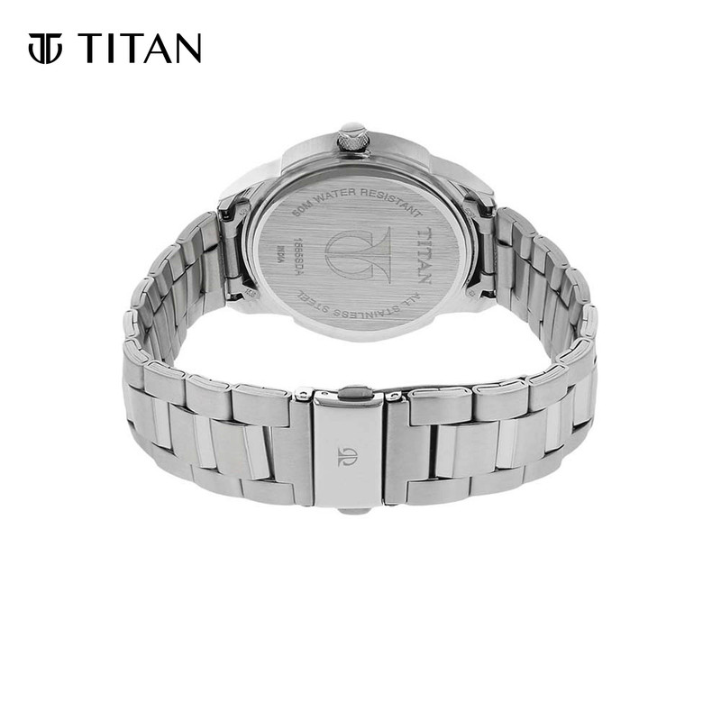 Titan Black Dial Silver Stainless Steel Strap Men's Watch 1585SM02