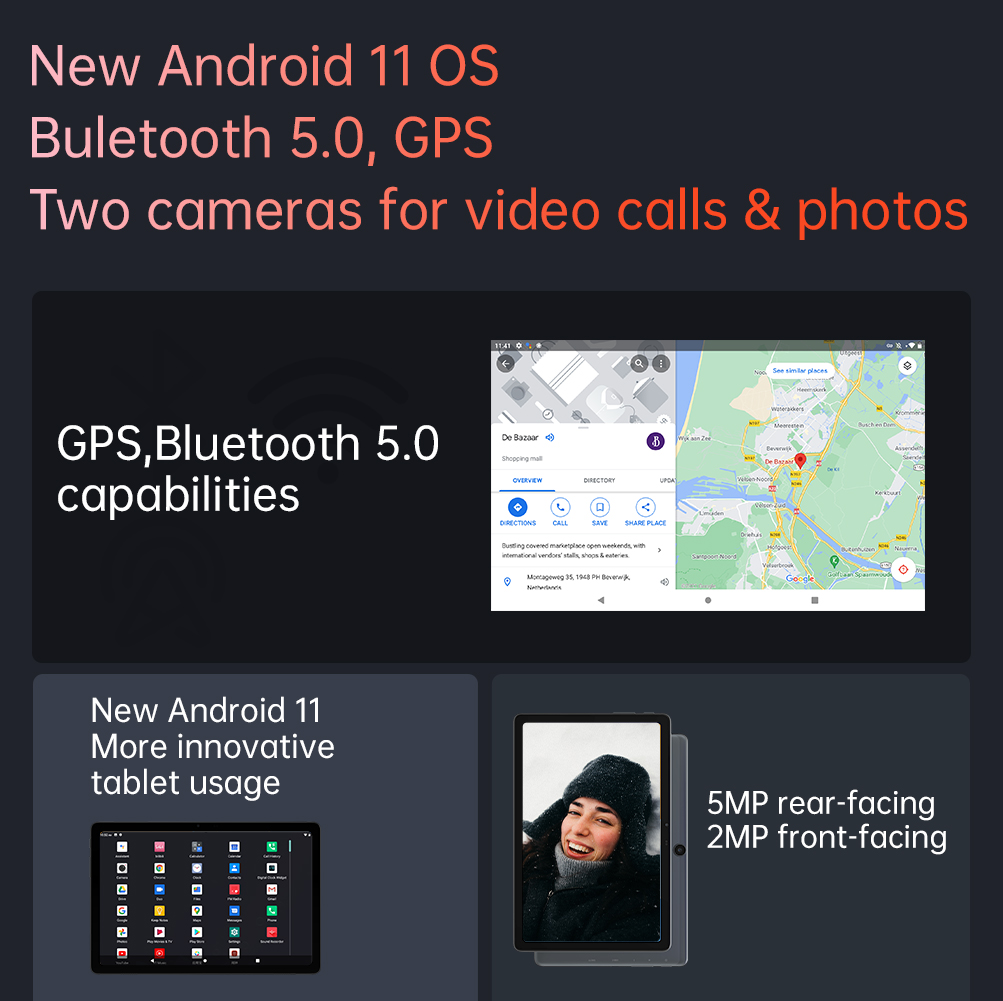 4GB running memory + 64GB storage space. Fast switching, bid farewell to the lag. Power-intensive jobs, and multitasking are easy on the Smile X. There's plenty of space for your files, photos, and videos. It also support SD card expansion up to 2TB.