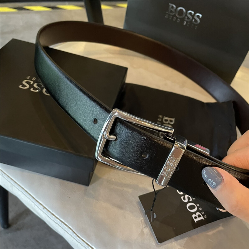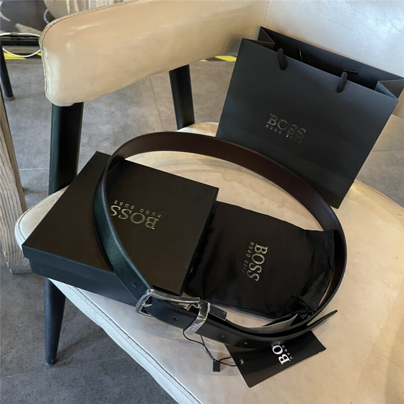 Original New 2021Hugo Boss High Quality Cowhide Men's Real Buckle Belts Apply To Business and Elegant Fashion