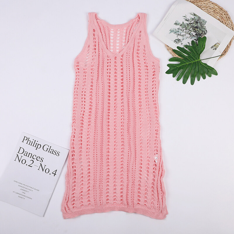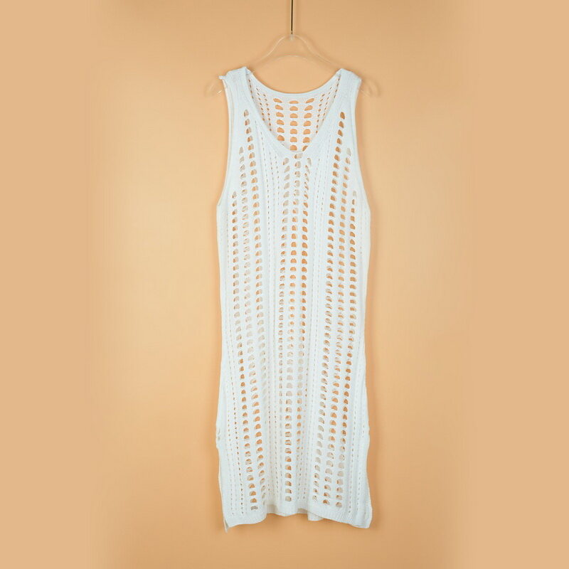 Eekisuf Sexy Hollow Out Beach Dress Women V Neck Sleeveless Crochet Swimsuit Cover Up Vestidos Female Bathing Suit