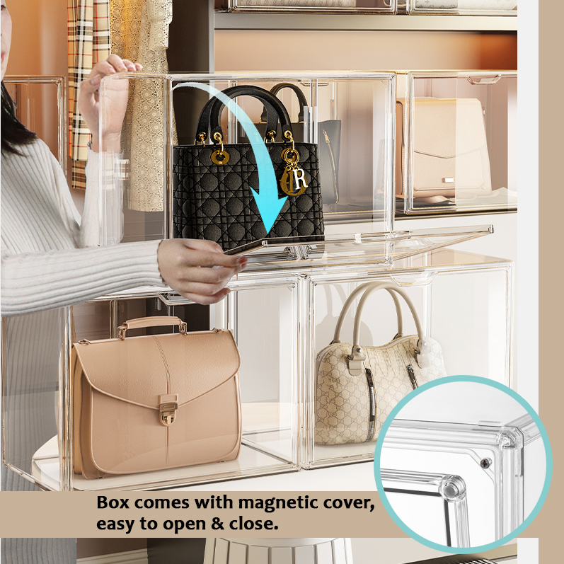 CORAL-Bag Storage Box With Magnetic Cover Handbag Storage Organizer