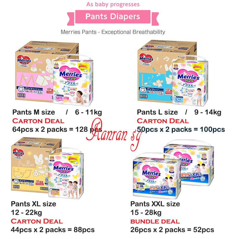 Kao Merries Tape & Pants Diaper CARTON DEAL - *Japan Domestic Sale version* / Sg Stock Ready !!!