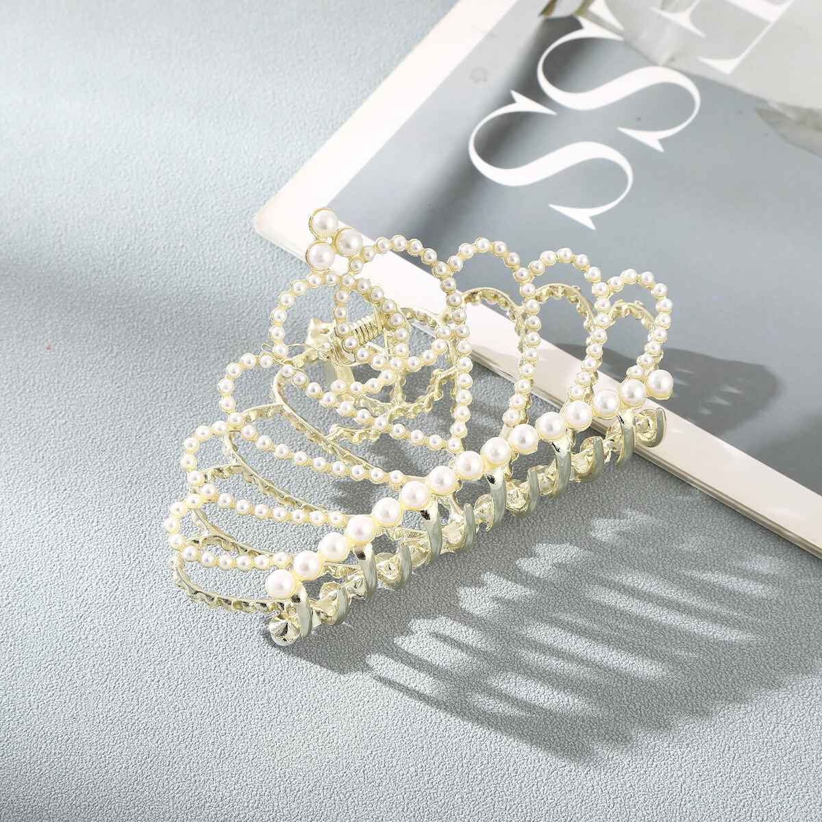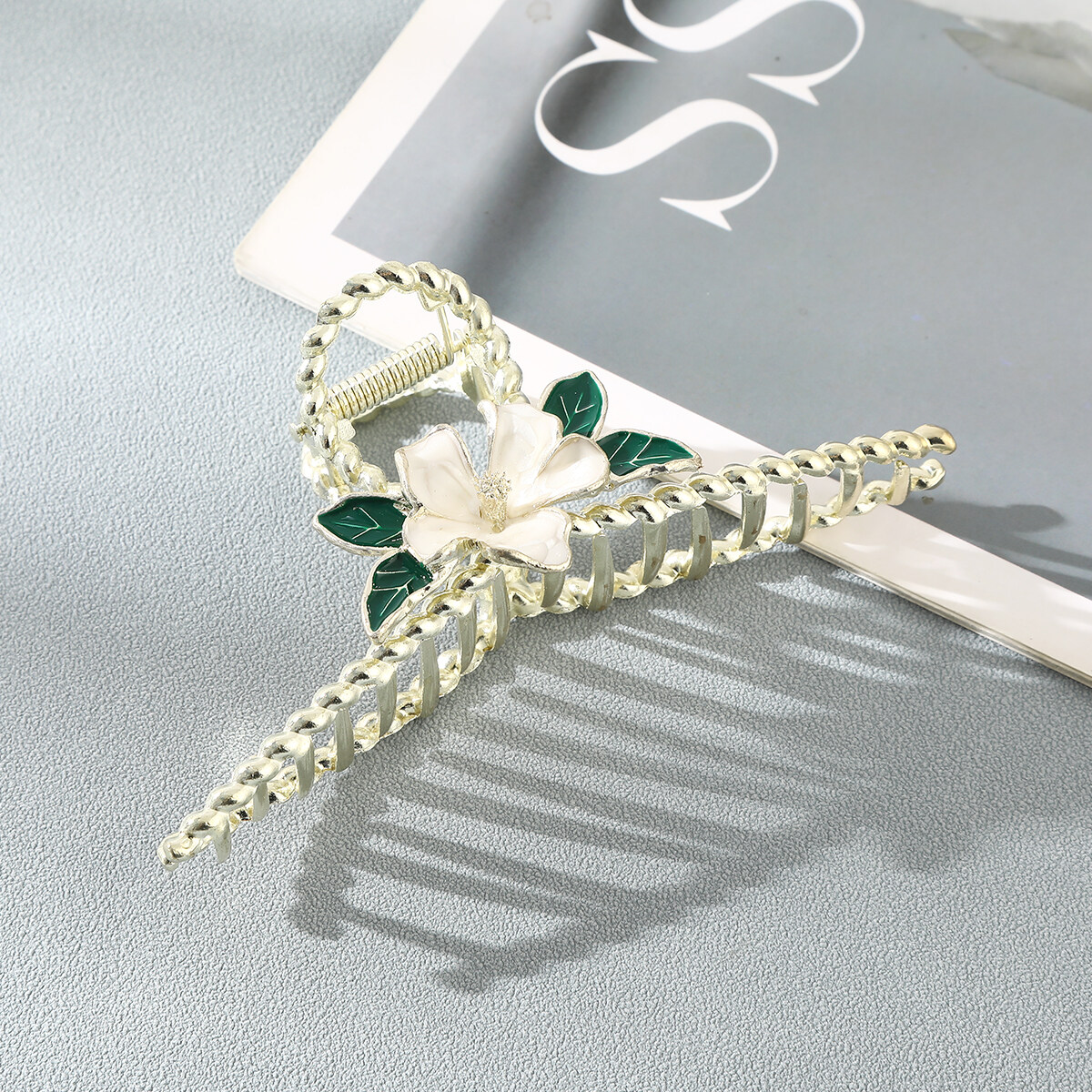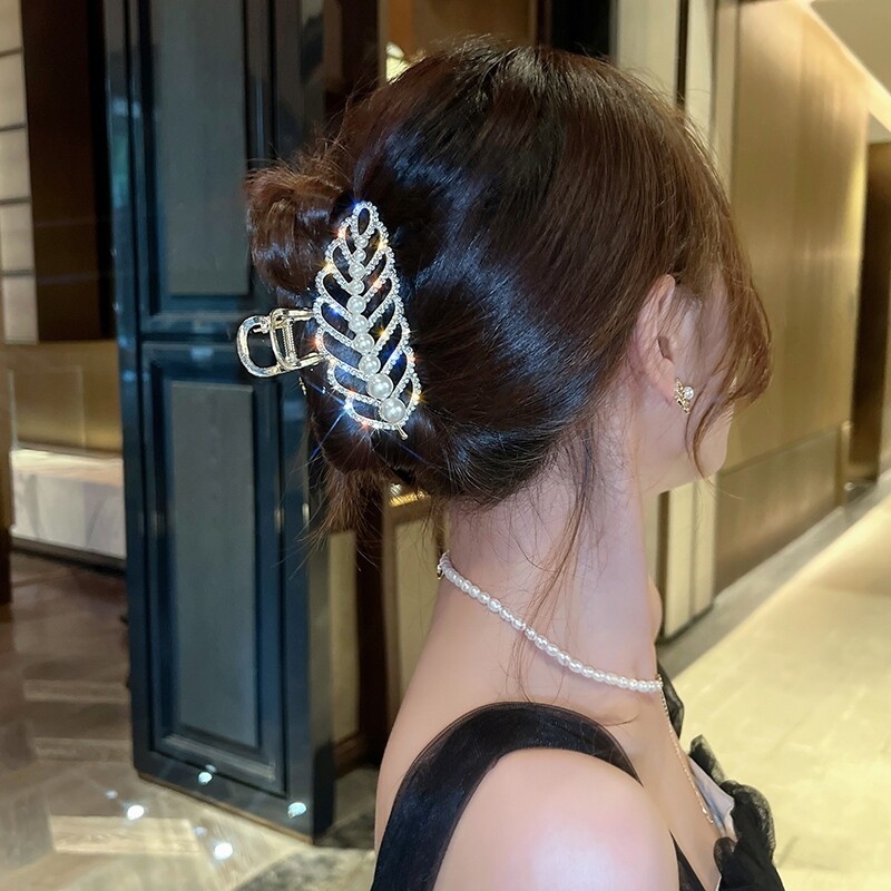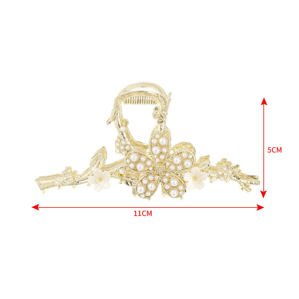 1pc Fashion Korean Style Alloy Hair Clip Senior Retro Style Flower Leaves Pearl Hairpin Catch Hair Accessories