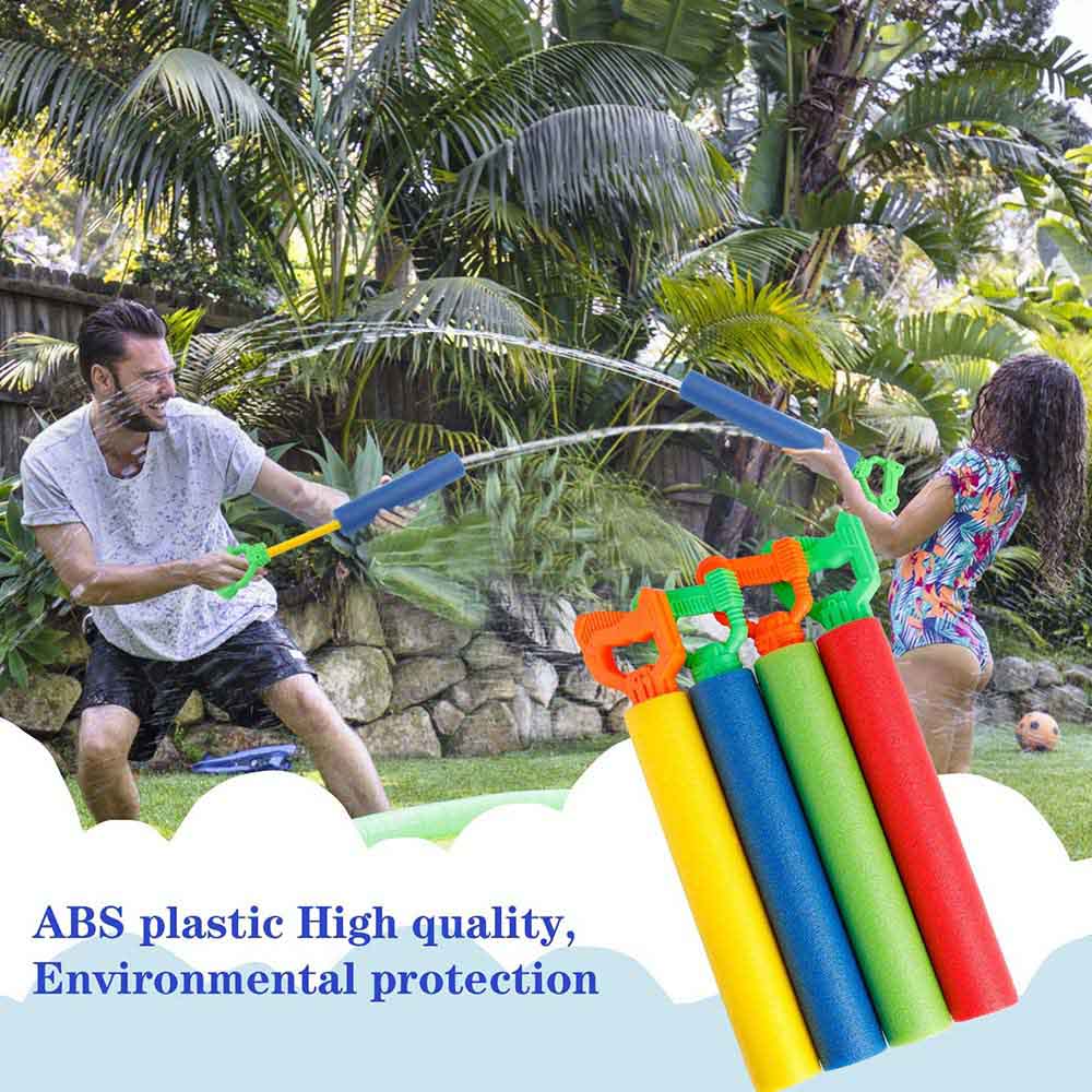 [Fun Water Toys] There are 4 kind of different color water guns in the pool toy set, which can support 4/6/8 players at the same time. You can play with your families and friends for a wonderful summer water sleep. This would be a great summer toy.