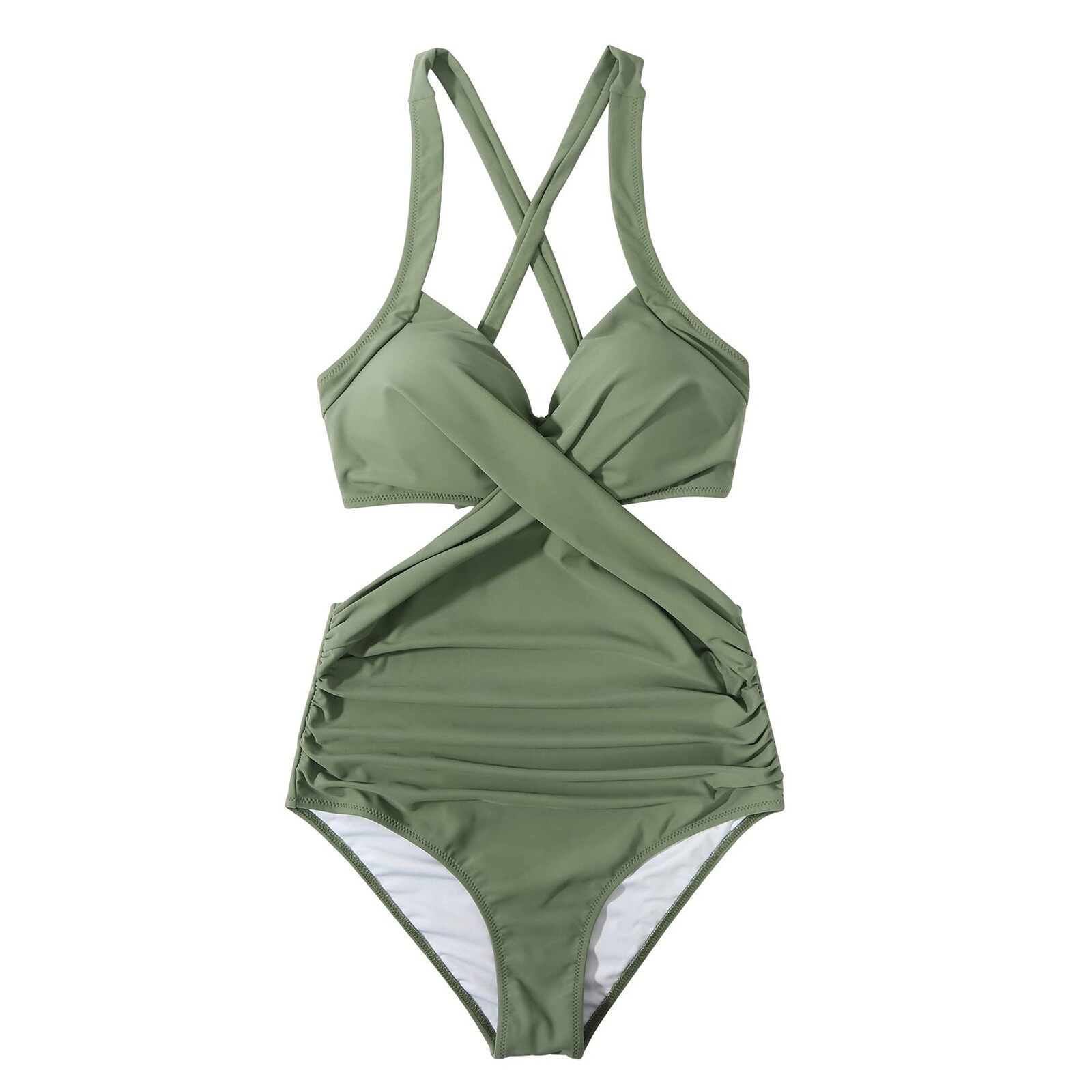 (Dickey)Hot Sale Women Front Cross Cutout One Piece Swimsuit Tummy Control High Waisted Monokini Bathing Suit