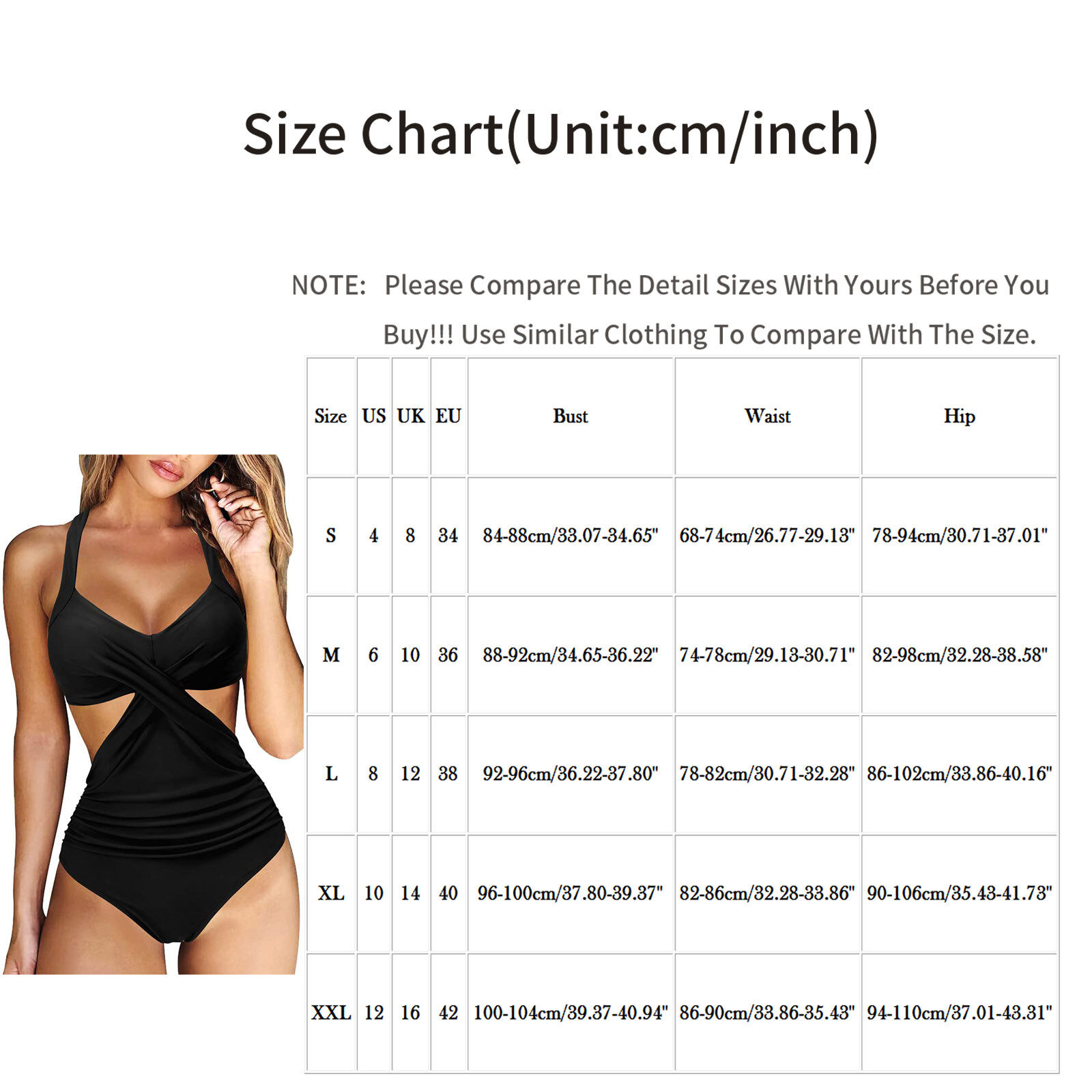 Size:XL US:10 UK:14 EU:40 Bust:96-100cm/37.80-39.37'' Waist:82-86cm/32.28-33.86'' Hip:90-106cm/35.43-41.73''