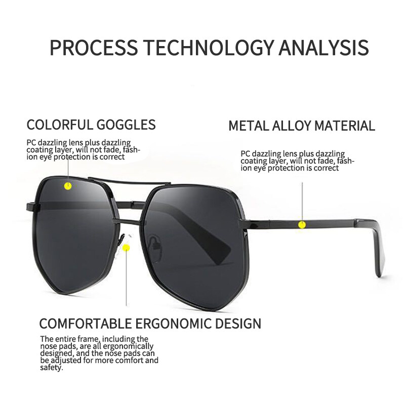 Sunglasses Fashion Metal Shades for Women Sun glasses Gray Polygon Colorful Reflective Sunglasses PTQ