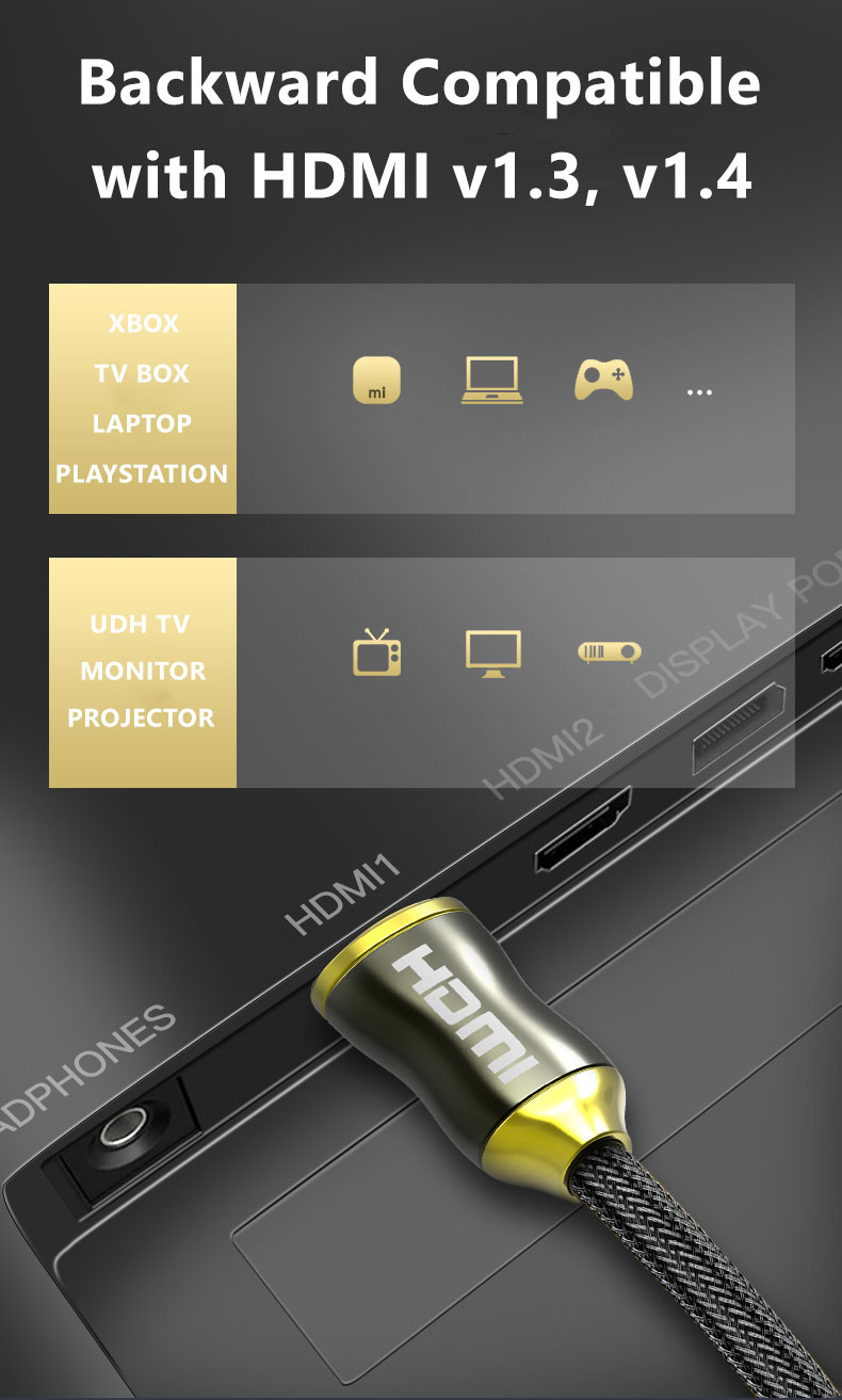 4K 60Hz HDMI Cable v2.0 High Speed High Performance Nylon Braided Supports HDMI ARC 4K Ethernet UHD Full HD 1080p 3D Smart TV Gaming Monitor Console - 2M Length
