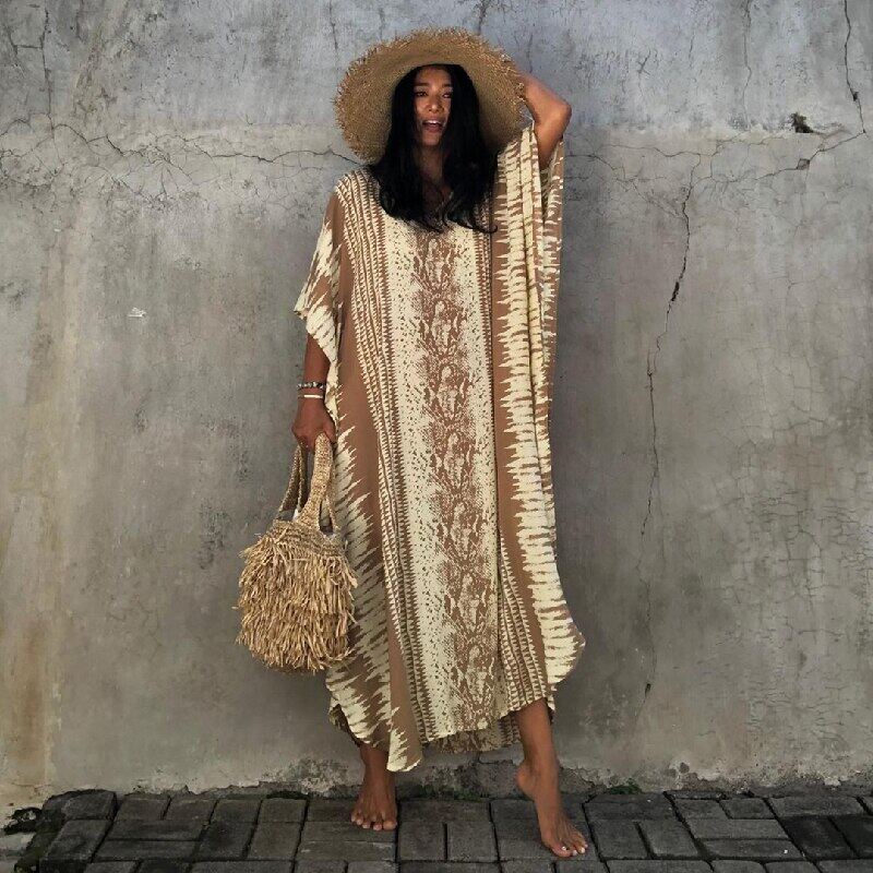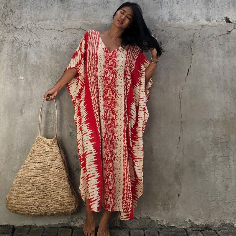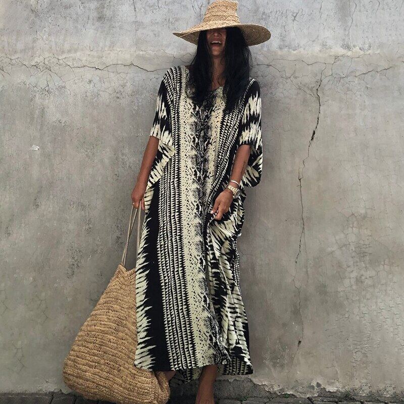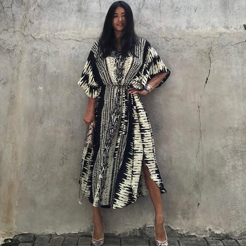 New Bikini Cover-ups Retro Snake Printed Self Belted Women Summer Dress Tunic Plus Size Beach Wear Swim Suit Cover Up