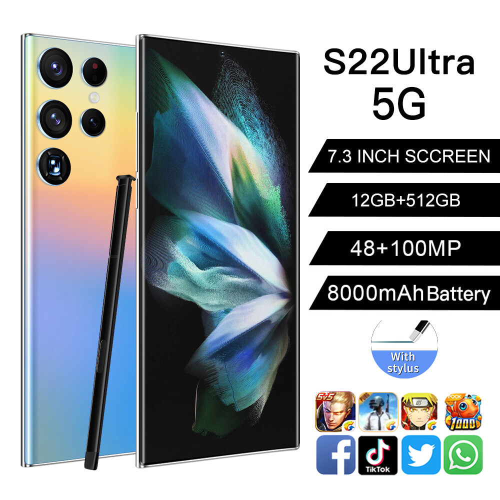 【original ready】Original phone S22 Ultra 5G S22Ultra 5G 7.3 Inch hp 12G RAM 512GB ROM 48MP 100MP 8000mah cheap cellphone washing warehouse Android 12.0 AI powered Face Recognition Unlocked Mobile Phon