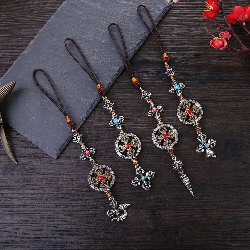 BIRONG Vintage Couple Gifts Braied Rope Dispelling Evil Car Key Chain DIY Ornaments Keyring Pendant Mobile Phone Lanyard Cross Vajra Pestle Tag Pentant Car Pendant Tibetan Tantric Auspicious Knot Cros