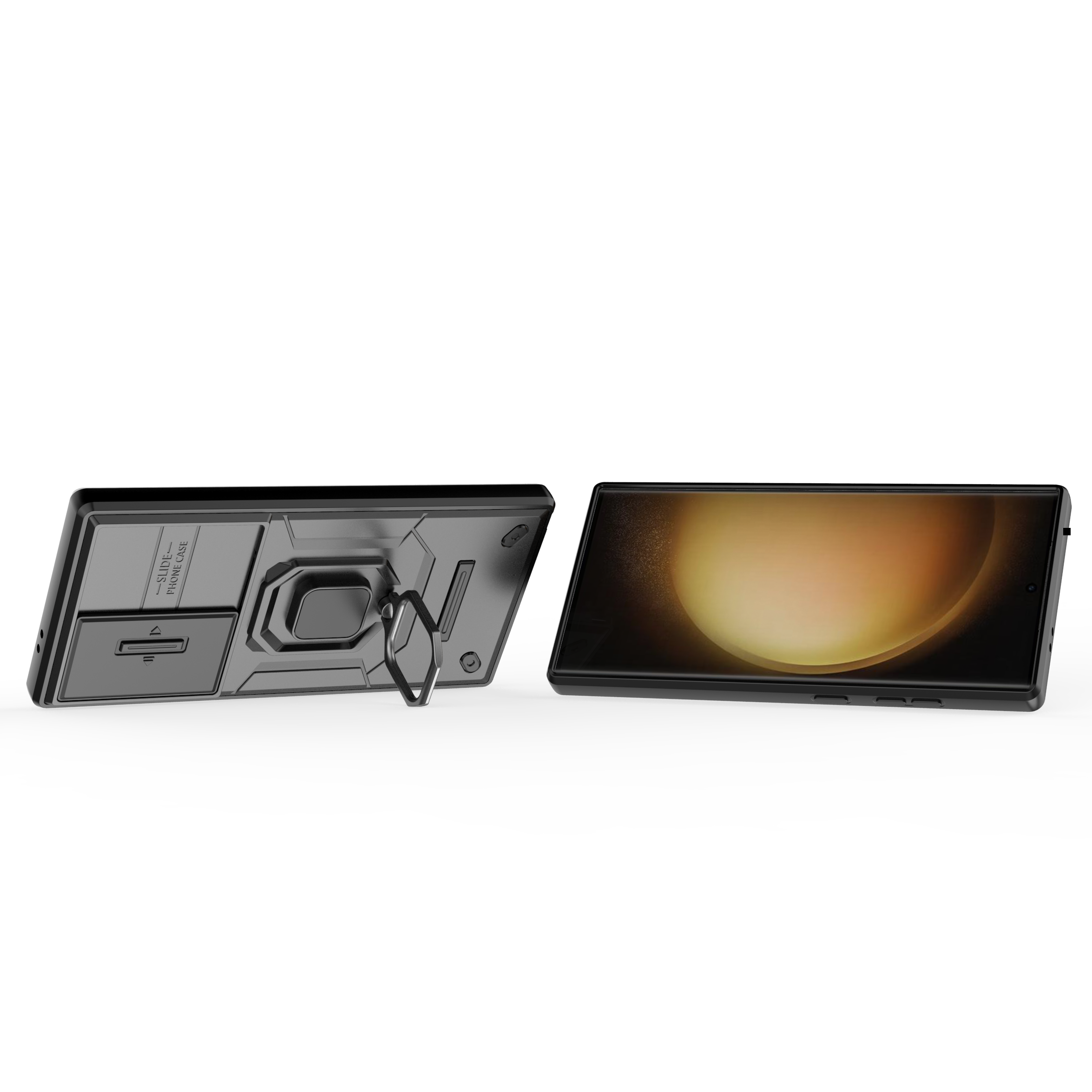 Lenuo Sliding Camera Cover For Samsung Galaxy S25 S24 Ultra S24 FE Phone Case with Magnetic Ring Stand and Shockproof Bumper, Compatible with Samsung Galaxy S24 Plus