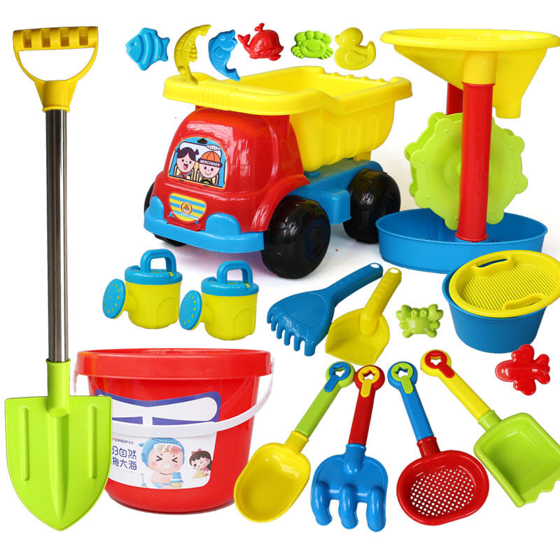Children's Beach Toy Set Car Boy's and Girl's Hourglass Bucket for Playing Water Baby's Sand Pool Digging Shovel Toy and Tool for Sand Playing