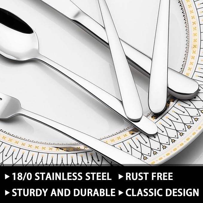 49-piece silverware set with storage box, heavy-duty stainless steel cutlery for 8, cutlery set with steak knife, rust-resistant, mirror-polished, dishwasher-safe