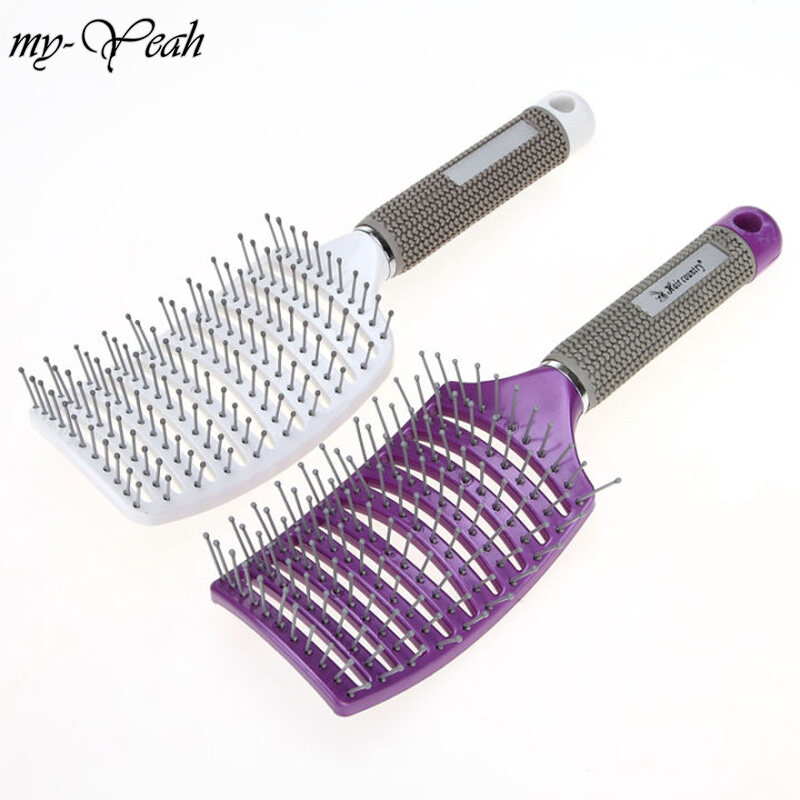 myyeah Hair Salon Heat-resistant Massage Combs Curved Hair Brushes Hairdressing Styling Vent Design Hair Tool- Random color