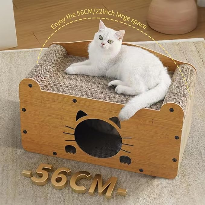 • 【Durable and Sturdy】The front and back panels are crafted from solid wood composite plates, designed for durability and resistance to deformation. The included long and short scratchers are constructed from eco-friendly, corrugated paper for a guilt-free scratching experience.Sprinkle with catnip to attract and encourage your cat to use this scratcher.