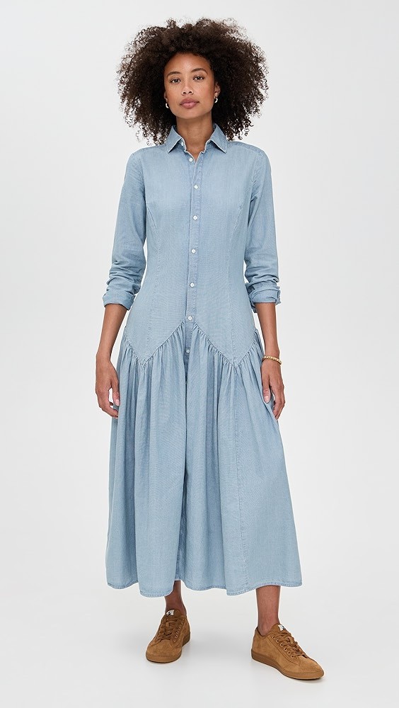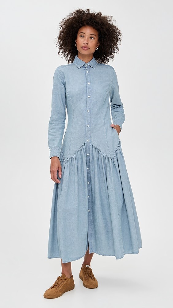 Chambray Long Sleeve Shirt Dress