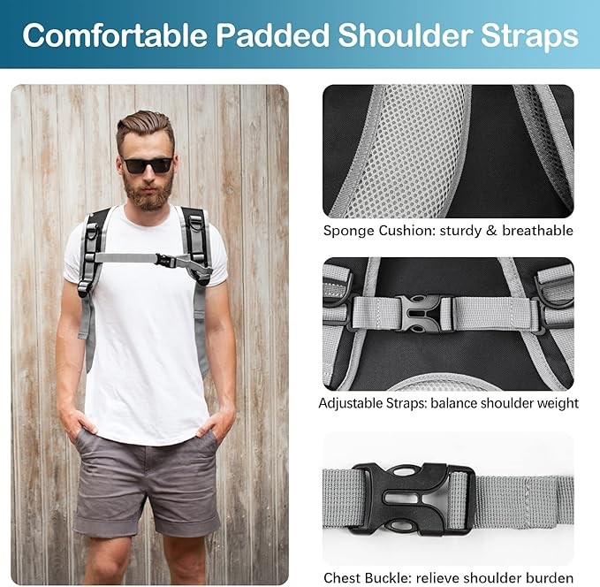 • ERGONOMIC DESIGN - The straps of backpack can absorb sweat and relieve the pressure from your backpack to make you feel more comfortable