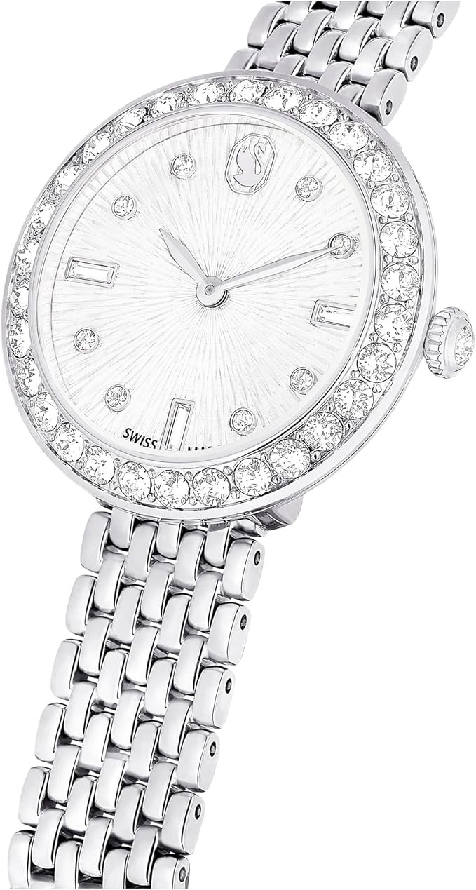 • Shimmering Style: Featuring a stainless steel case with a sparkling crystal pavé bezel and a single crystal in the crown, this timepiece sparkles in a way that only Swarovski pieces can