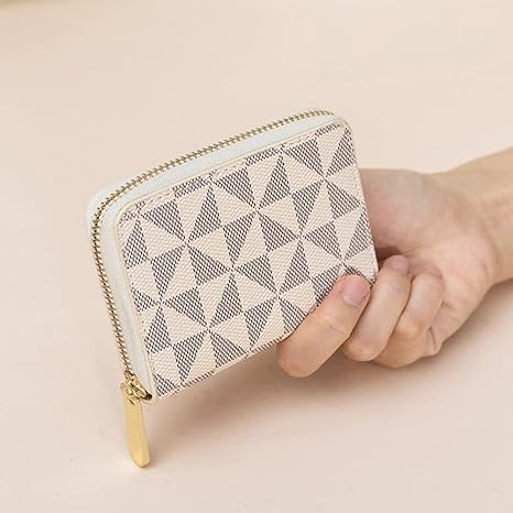 Veki Women's Credit Card Holder, RFID Leather Zip Wallet, Small Zip Card Holder for Unisex, White, Simple